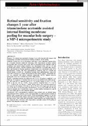 Publication: Retinal sensitivity and fixation changes 1 year after triamcinolone acetonide assisted internal limiting membrane peeling for macular hole surgery - a MP-1 microperimetric study